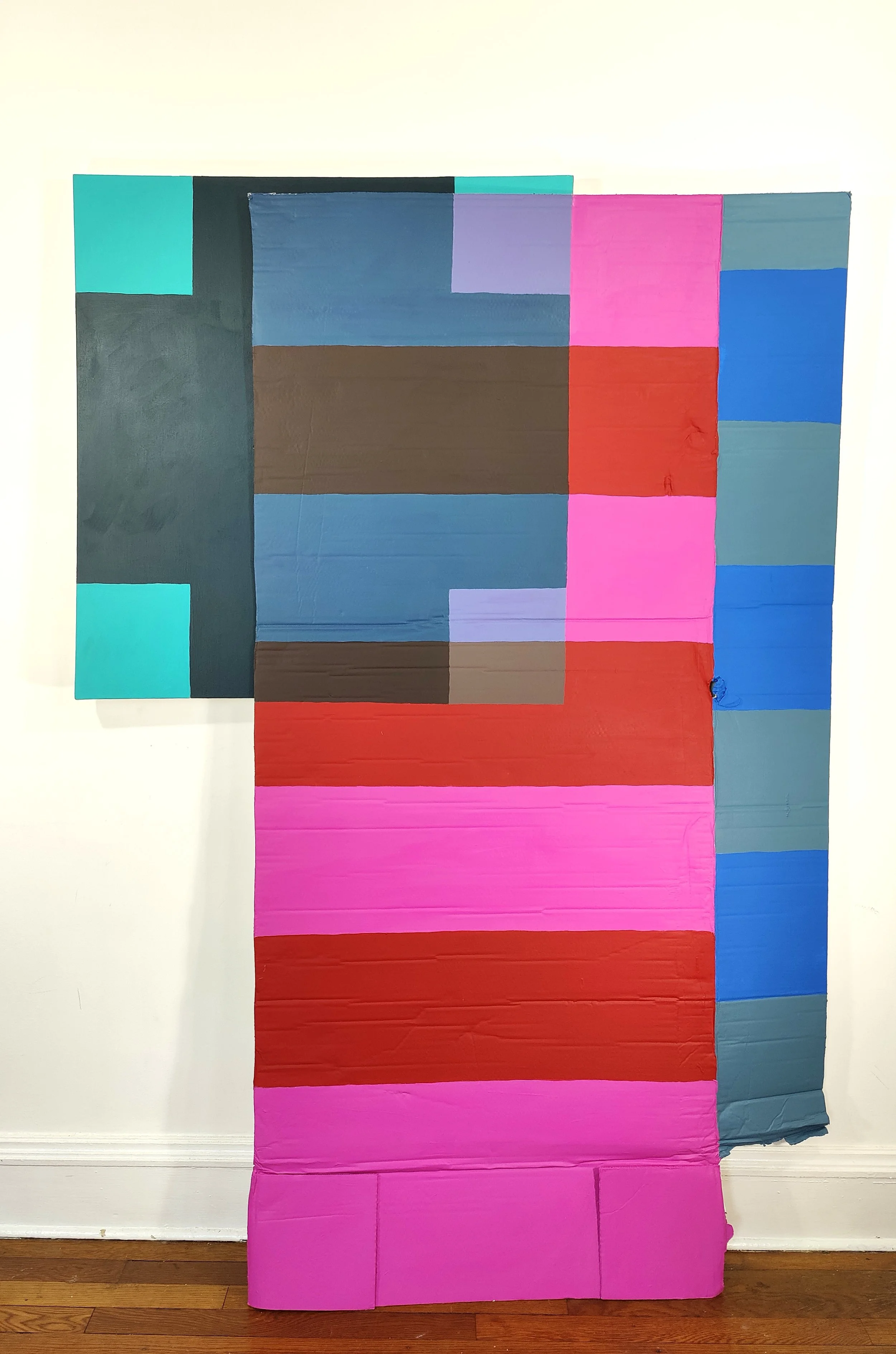 Cool Jewels and Aprons, acrylic on cardboard and canvas, 74” x 53”